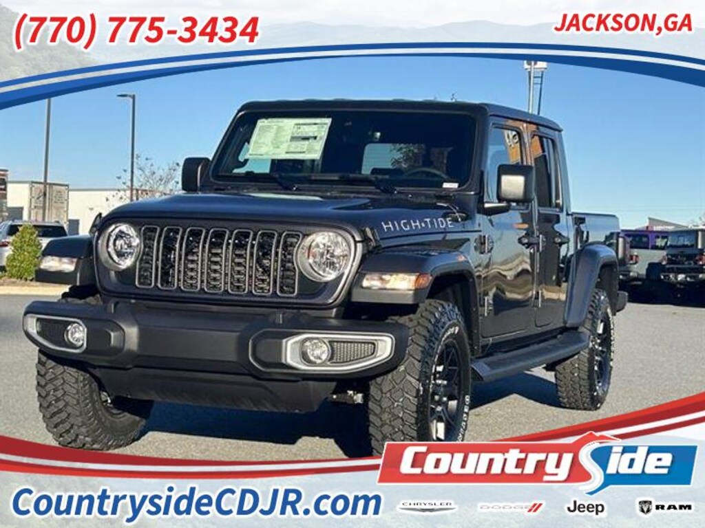 Experience capability and comfort with this 2025 Jeep Gladiator High Tide 4WD, now available in Jackson, GA. Equipped with a proven 3.6L V6 gasoline engine, this Jeep Gladiator delivers confident towing and versatile off-road performance without sacrificing daily drivability. The High Tide trim enhances utility and style with rugged exterior accents, functional cargo solutions, and premium interior finishes ideal for weekend adventures or worksite demands. Inside, enjoy advanced technology and convenience features including an intuitive Navigation system, Hands-Free Bluetooth for seamless calling and audio streaming, and Automatic Climate Control to keep passengers comfortable in any weather. Smartphone integration is simple with Android Auto, allowing access to maps, music, and messages through the vehicle's infotainment display. Safety is prioritized with Forward Collision Warning to help alert you to potential hazards ahead. This Jeep Gladiator stands out as a smart value in Jackson, GA â" offering the best price on a robust mid-size pickup that blends Jeep capability with modern creature comforts. Whether navigating city streets or tackling rugged trails, the 2025 Jeep Gladiator High Tide 4WD is configured to perform. Schedule a test drive today to experience its unique combination of power, technology, and safety for yourself. Competitive pricing and immediate availability make this an exceptional opportunity.