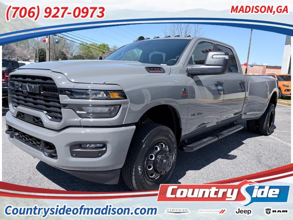 Discover the 2026 Ram 3500 Big Horn 4WD with Dual Rear Wheels, now available in Madison, GA. Powered by a robust 6-cylinder, 6.7L diesel engine, this heavy-duty pickup delivers exceptional towing capability, confident on-road stability, and long-haul durability for work or play. The Big Horn trim balances utility and comfort with thoughtful features that enhance every drive. Inside, enjoy modern connectivity with Hands Free Bluetooth and XM Radio for entertainment and communication on the go. Safety-focused technology includes a Back-Up Camera, Rear Parking Sensors, and Forward Collision Warning to help you maneuver tight job sites and busy parking areas with greater confidence. Dual Rear Wheels add load-bearing strength and increased trailer control, making this Ram 3500 an ideal partner for demanding hauling tasks. This truck's content-rich specification and proven diesel performance make it a smart choice for contractors, fleet managers, and drivers who need reliable power and capability. Located in Madison, GA, the vehicle is being offered at the best price in the area, giving you exceptional value for a 2026 model year heavy-duty pickup. Schedule a test drive or contact us for current availability and financing options. Experience the power and practicality of the Ram 3500 Big Hornâ"built to handle the toughest jobs while keeping comfort and safety a priority.
