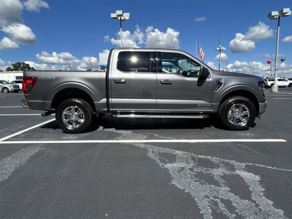 Experience power and advanced technology with this Gray 2024 Ford F-150 4x4 XLT SuperCrew. Featuring the robust PowerBoost 3.5L Hybrid Twin Turbo V6 engine and a 10-speed shiftable automatic transmission, this truck delivers impressive performance and efficiency. The XLT trim includes Equipment Group 301A, chrome accents, running boards, and a comfortable SuperCrew cab with a 5.5 ft. short bed. Enjoy seamless connectivity with wireless Apple CarPlay and Android Auto, SYNC infotainment, a 12-inch touchscreen, and FordPass Connect with Wi-Fi hotspot. Safety is top-notch with lane keeping assist, front/rear automatic emergency braking, blind spot monitoring with trailer coverage, rear cross traffic alert, and a surround view camera. The Mobile Office Package and customizable digital instrument cluster make work and play easier. Built for towing and hauling, it includes a class IV trailer hitch, trailer backup assist, and 7-pin wiring. Step up to Ford's legendary durability and modern convenience-test drive this F-150 today.